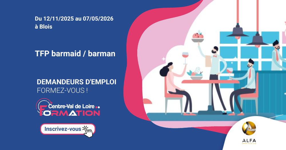 Destinée aux demandeurs d’emploi, financée par la Région Centre-Val de Loire, cette formation permettra d’acquérir les compétences nécessaires au métier de barman. La prochaine session de formation commence le 12 novembre à Blois. |