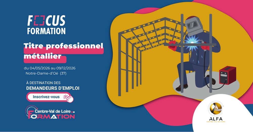 Destinée aux demandeurs d’emploi, cette formation permet d’acquérir les compétences nécessaires au métier de métallier. Prochaine session de formation le 4 mai 2026 à Notre-Dame-d'Oé. |