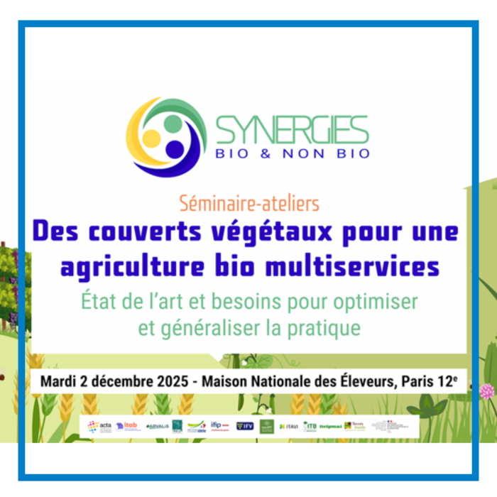 La journée "Des couverts végétaux pour une agriculture bio multiservices. Etat de l'art et besoins pour optimiser et généraliser la pratique" organisée par le programme inter-instituts Synergies Bio & Non Bio, se divisera en 2 parties : séminaire le matin et ateliers l'après-midi.