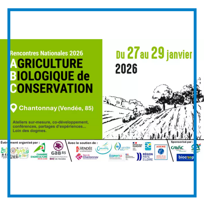 A l'initiative de la Chambre d'Agriculture des Pays-de-la-Loire, du GAB de Vendée et des Décompacté.e.s de l'ABC, ces trois jours seront l'occasion de rencontrer et d'échanger avec les agriculteurs qui pratiquent l'ABC.