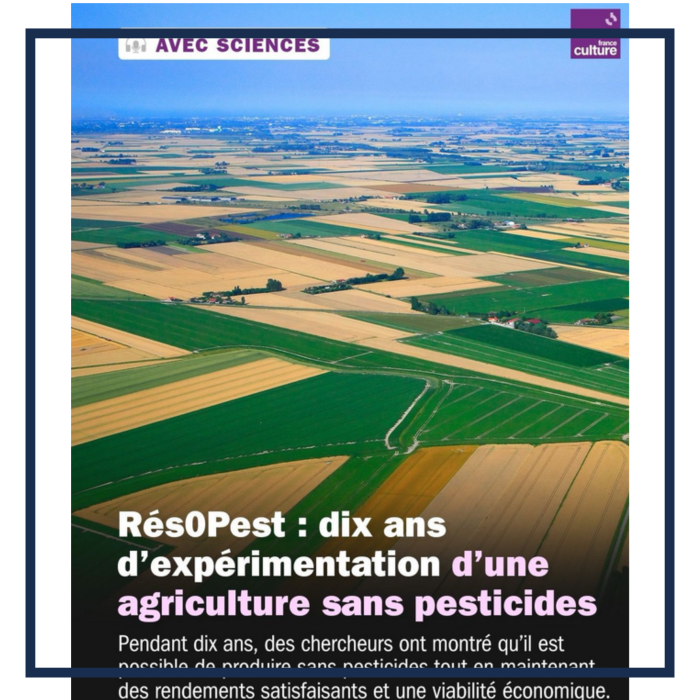 Dans "Avec sciences", Alexandra Delbot, chroniqueuse France Culture revient sur le projet Rés0Pest avec Jean-Noël Aubertot, agronome et directeur de recherche à l'INRAE, pour en expliquer les enjeux et les résultats après dix ans d'expérimentation. |
