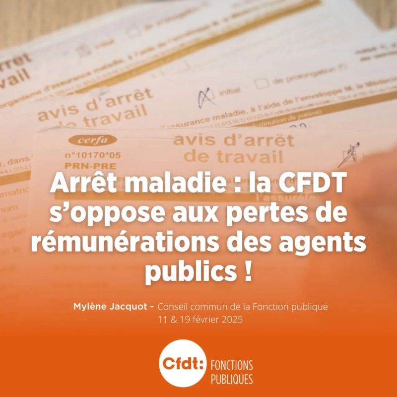 Arrêt maladie : la CFDT s’oppose à la perte de rémunération des agents publics Les décrets d’application sont sortis : depuis le 1er mars, lors d’un congé de maladie ordinaire, la rémunération des agents publics, fonctionnaires et contractuels, sera réduite à 90% pendant les 3 premiers mois. Jusqu’à présent, la rémunération était maintenue à 100% sur ces 3 mois, sauf le 1er jour « de carence ».